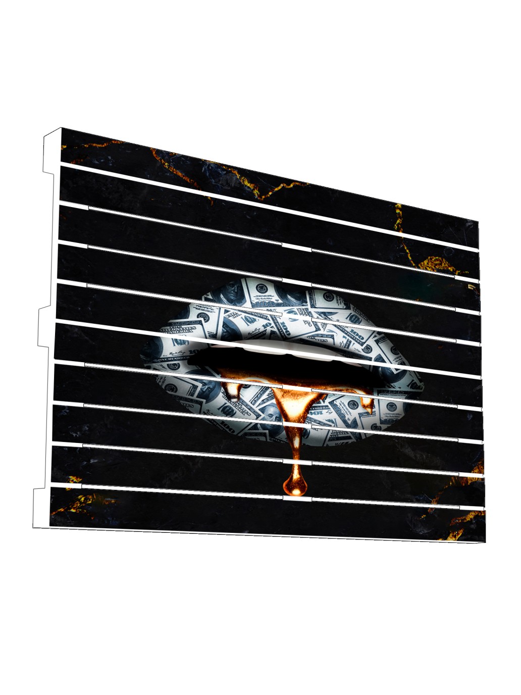 Cuadro Palets 80x120 cm Labios con Billetes Goteo Oro Fondo Negro